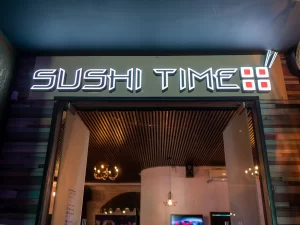 • Кафе-бар «SUSHI TIME» (ежедневно с пн-чт, вс 12:00 до 00.00; пт-сб 12:00 до 02:00),