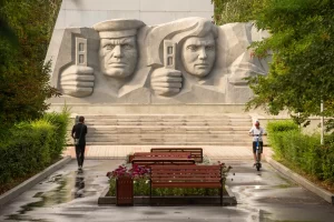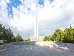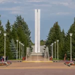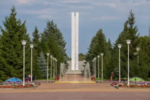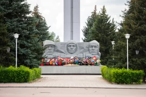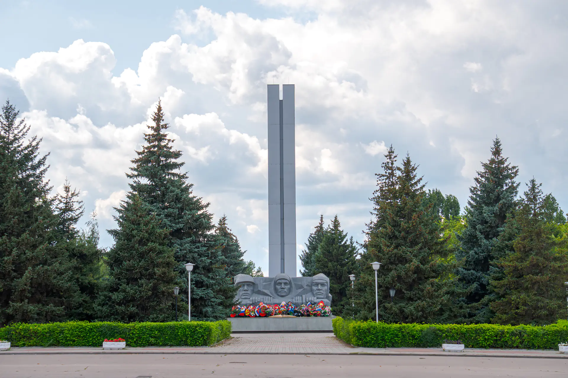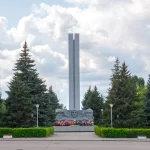 Четыре плиты с именами погибших земляков — участников войн установлены у подножия стелы с западной стороны. Важной деталью этого монумента является капсула, заложенная в основании, с посланием к комсомольцам, которым предстоит открыть ее в 2080 году в честь 300-летия города.